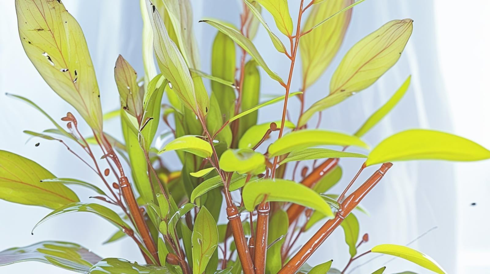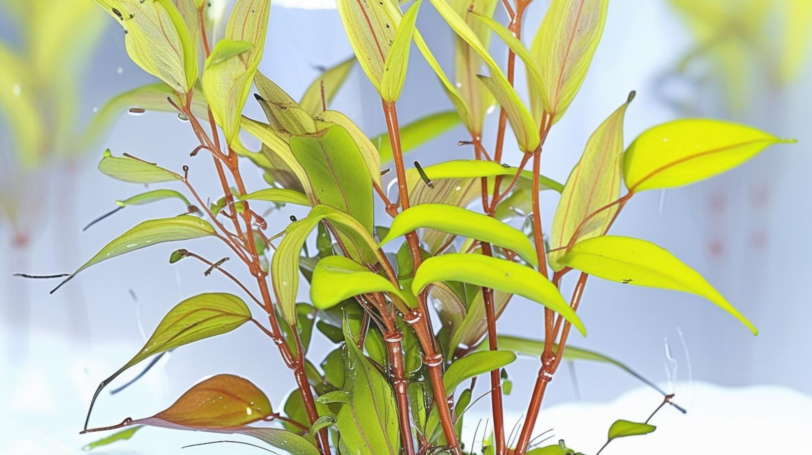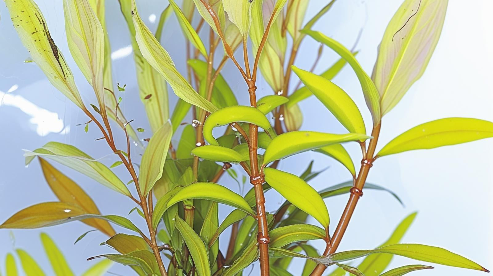 Nesaea pedicellata "Golden" is a cultivated variety of Nesaea crassicaulis red. It is a very beautiful aquatic plant and it has high demands for light, nutrient, and CO2. It grows best in soft & slightly acidic water. This plants is similar to Ammannia species and is often mistaken for them. But in the aquarium, it can be easy recognized by its yellow-green stems. Easy to propagate by side shoots or cuttings, which can be cut off and planted in the bottom.
